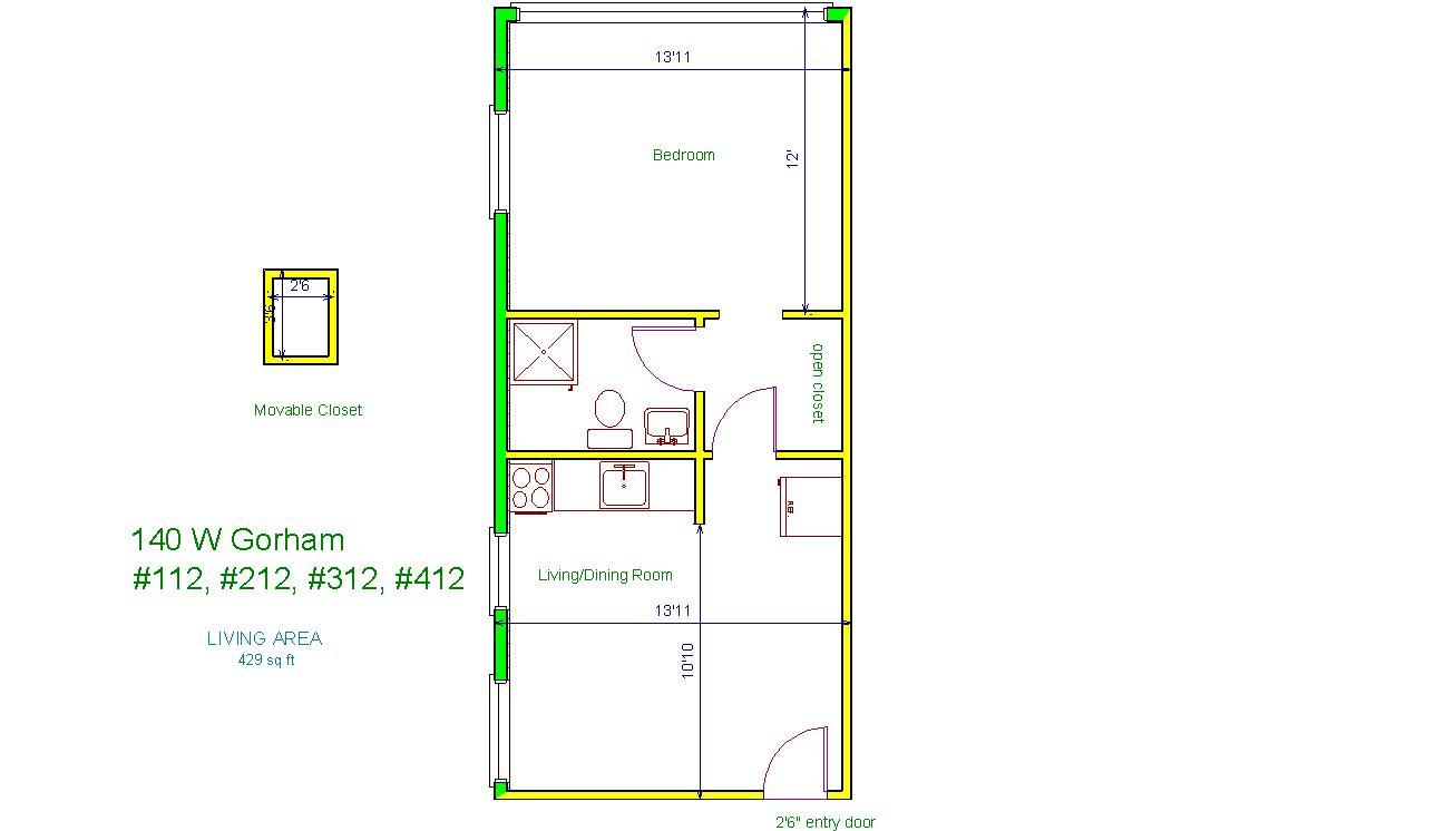 140 W. Gorham St., Apt. # 412, Madison, WI 53703