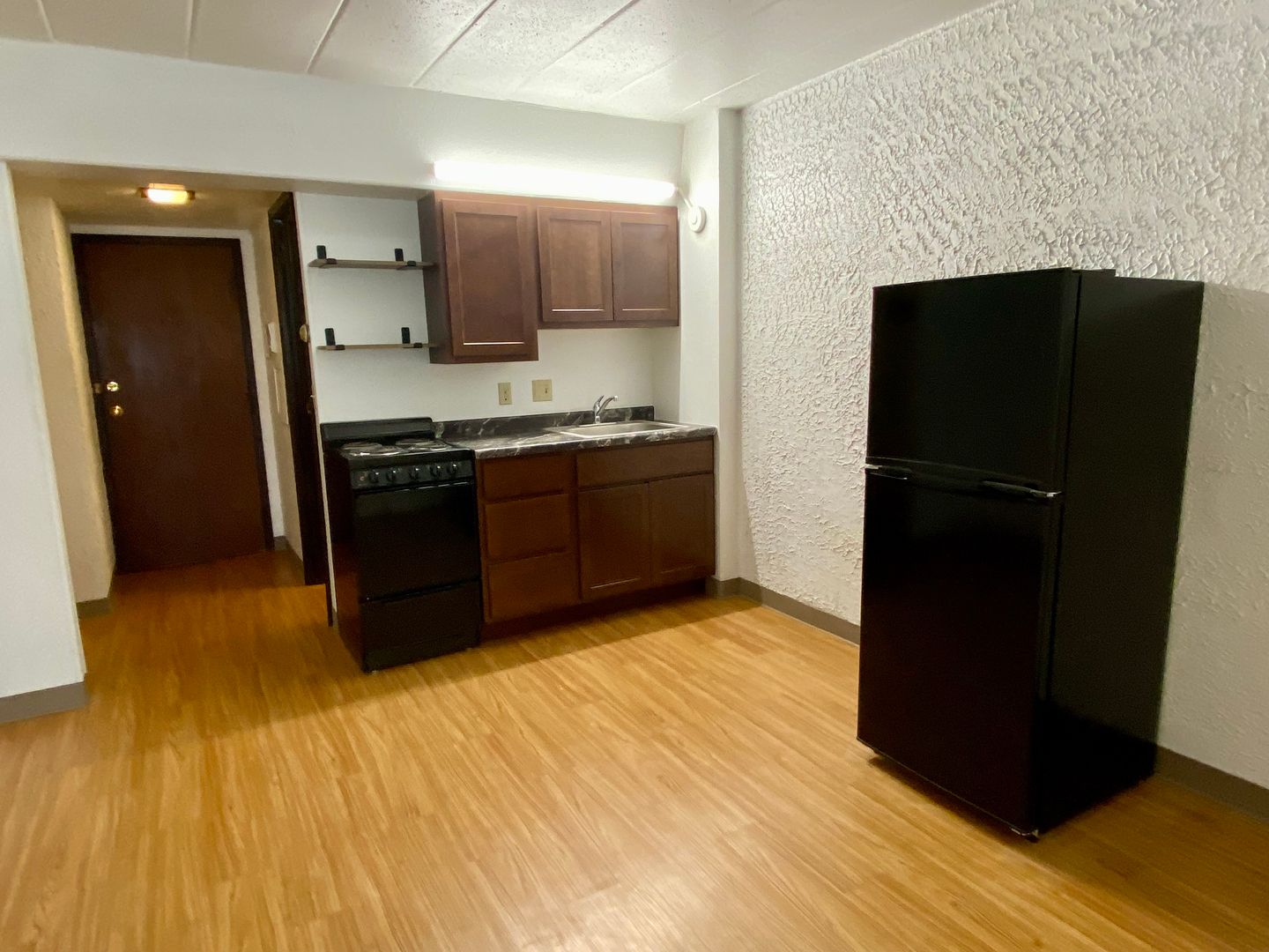 Remodeled unit with wood floors.